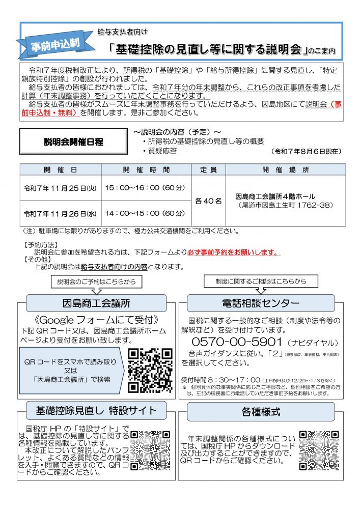 【給与所得者向け 基礎控除の見直しに関する説明会】因島でも開催致します!