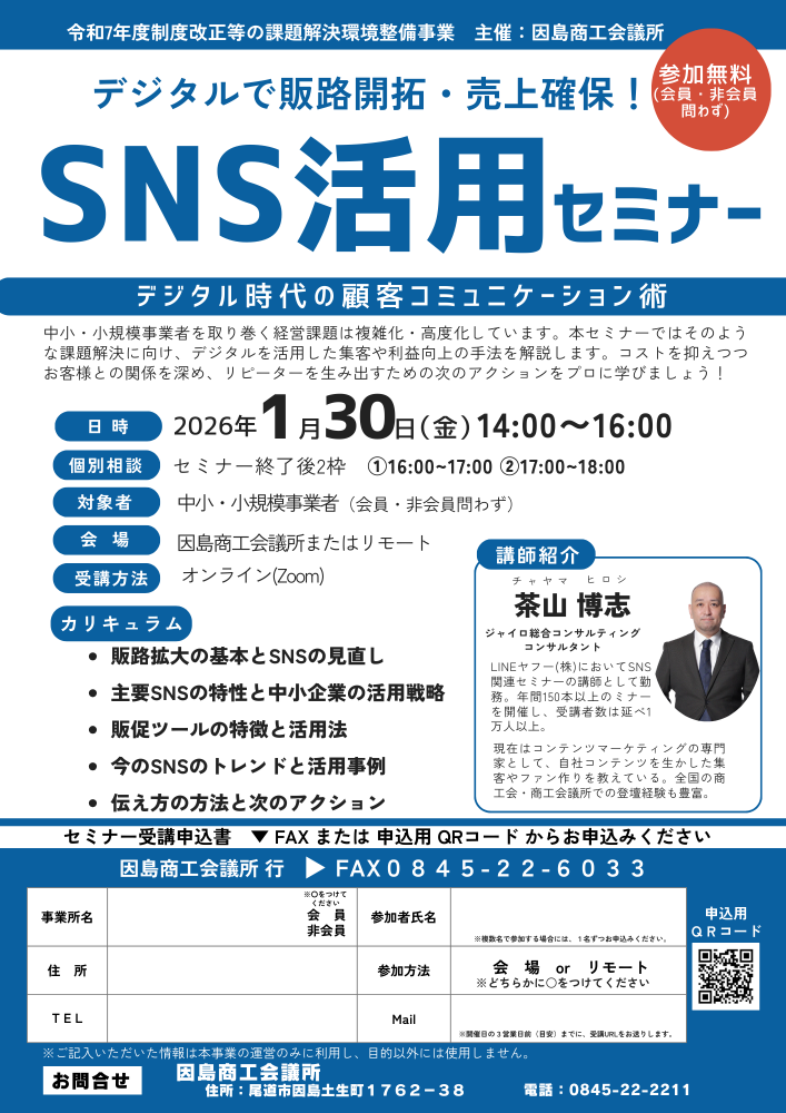 ※会場視聴(因島商工会議所)またはリモート参加を選択可 - 対 象:中小・小規模事業者(会員・非会員問わず)
