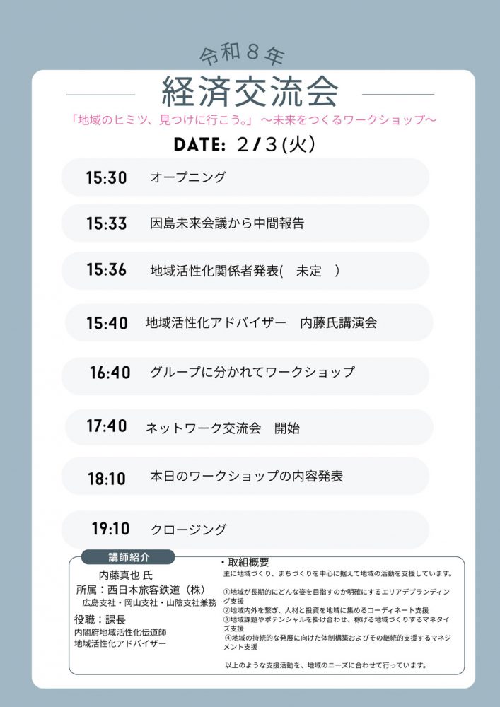 【経済交流会でワークショップを開催いたします】