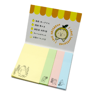 ●ふせん 550円(税込) サイズ 約7.5cm×約10cm はっさくんのイラストが入ったふせんメモや伝言も楽しく彩り、使うたびに笑顔になれる毎日のひとことを、少し特別にしてくれるアイテムです※郵送の場合は、別途送料をいただきます。 【販売元】坂井文具店尾道市因島田熊町1113-10845-22-0570 もどる