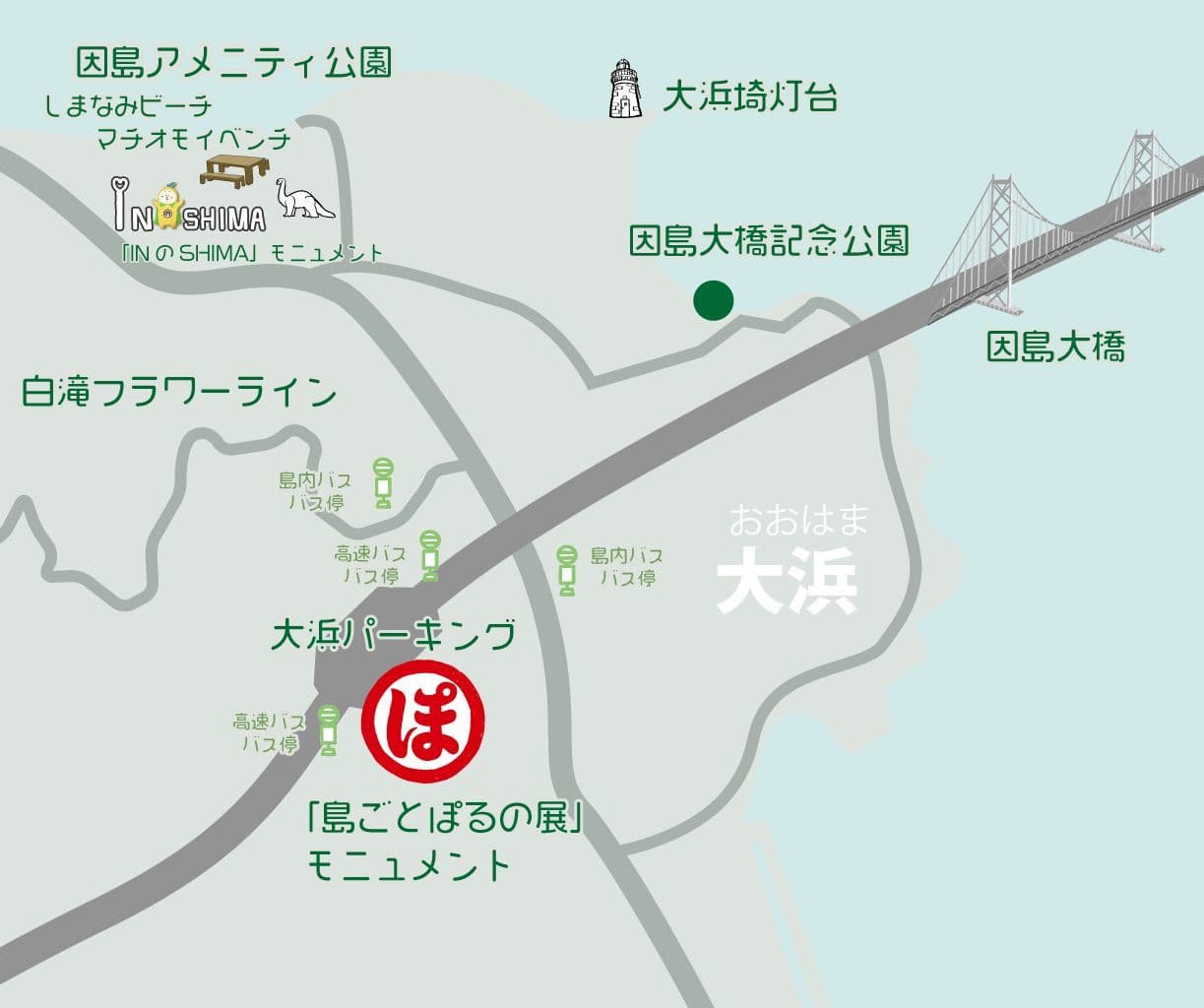 2024年7月~9月に開催された因島出身のロックバンド「ポルノグラフィティ」デビュー25周年イベント「島ごとぽるの展」を記念して、瀬戸内しまなみ海道大浜PA(パーキングエリア)下り線ハイウェイショップ園地に、モニュメントが建てられました。